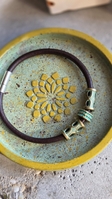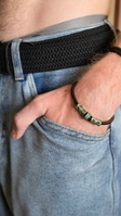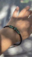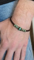 Браслет шкіряний темно-коричневого кольору з цинковими намистинами мідного кольору з зеленою патиною. Унісекс.