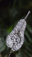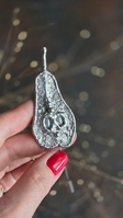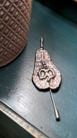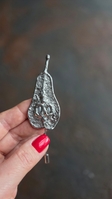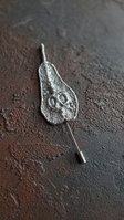 Оригінальна брошка ручної роботи. Ексклюзивна прикраса з міді та олова у вигляді розрізаної груші.