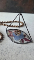 Ручна підставка для кілець у техніці Тіффані з прозорого скла та натуральних сухоцвітів.